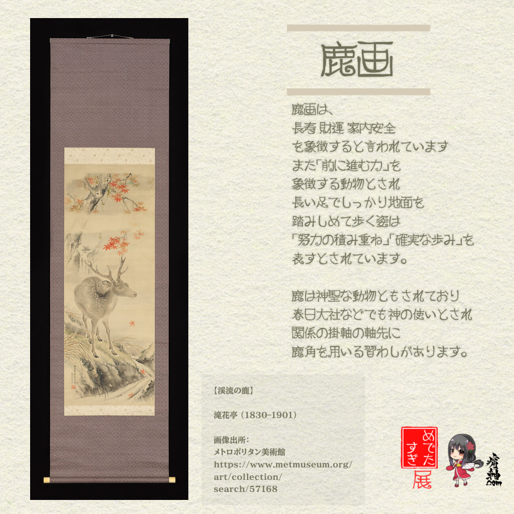 滝鹿画(たきしかが) – 滝と鹿で活力と平和。